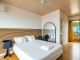 Der obere Teil des Anwesens ist zwei wunderschönen, unabhängigen Elternsuiten vorbehalten, die jeweils über einen eigenen Eingang und ein angrenzendes Badezimmer (Waschbecken, Dusche und WC) verfügen. Sie sind so konzipiert, dass sie die Privatsphäre und den Komfort der Gäste wahren, und profitieren von reichlich natürlichem Licht sowie einem freien Meerblick, der zur Entspannung und Erholung einlädt.