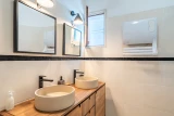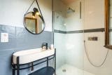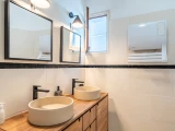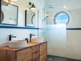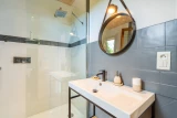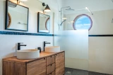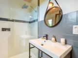 Angrenzend an das Hauptschlafzimmer ist sie mit einer modernen Dusche, einem WC und einem Doppelwaschtisch ausgestattet.